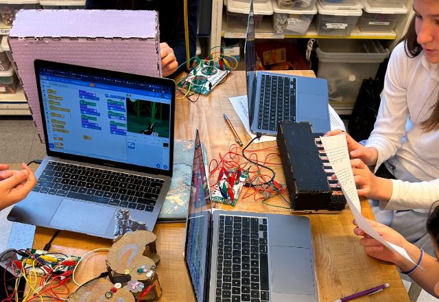An Apple Distinguished School since 2015, Marymount employs a 1:1 iPad (N-V) and MacBook Air (VI-XII) program that is further enhanced by collaborative work areas and digital fabrication spaces. Using innovative tools and teaching methods, faculty across departments and divisions design their curricula to engage students through problem solving, teamwork, imaginative expression, and real-world connection. Whether programming an Ozobot or using a scroll saw to fabricate a pinewood derby car or designing an interactive work of art with littleBits, students approach novel situations with agility, determination, and a growth mindset.