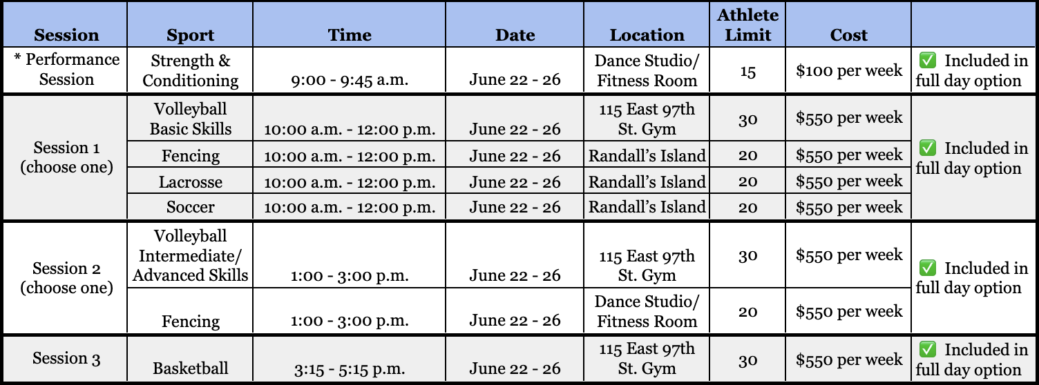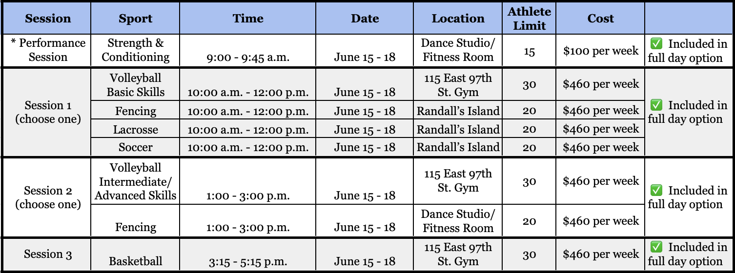 Marymount is excited to offer a range of summer sports training programs for Marymount student-athletes in Classes VI-XII from June 15 - July 2. Choose from one, two, or three daily sessions to create a customized program tailored to your individual interests! The sports offered include: